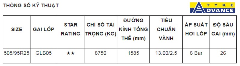 1.Thông Số Kĩ Thuật Lốp Advance 505/95R25 (18.00R25) Trung Quốc