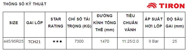 Hình ảnh: Thông Số Lốp Tiron 445/95R25(16.00R25).