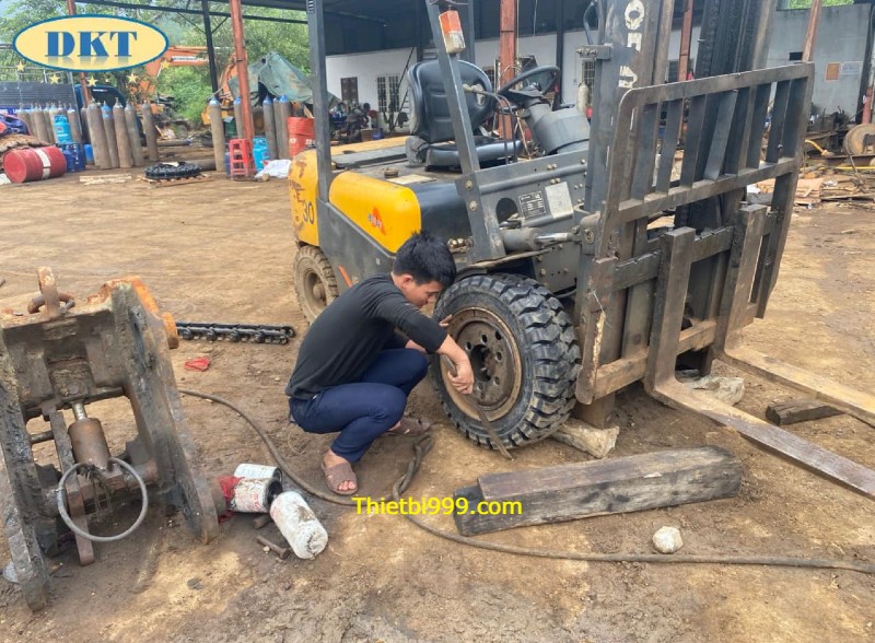 Hình ảnh: Quá Trình Thay Thế Lốp Đặc Mới Cho Xe Nâng 3 Tấn.