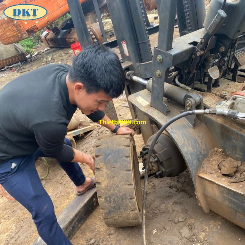 Hình ảnh: Thay Lốp Trước Đặc Cho Xe Nâng 2.5 Tấn.